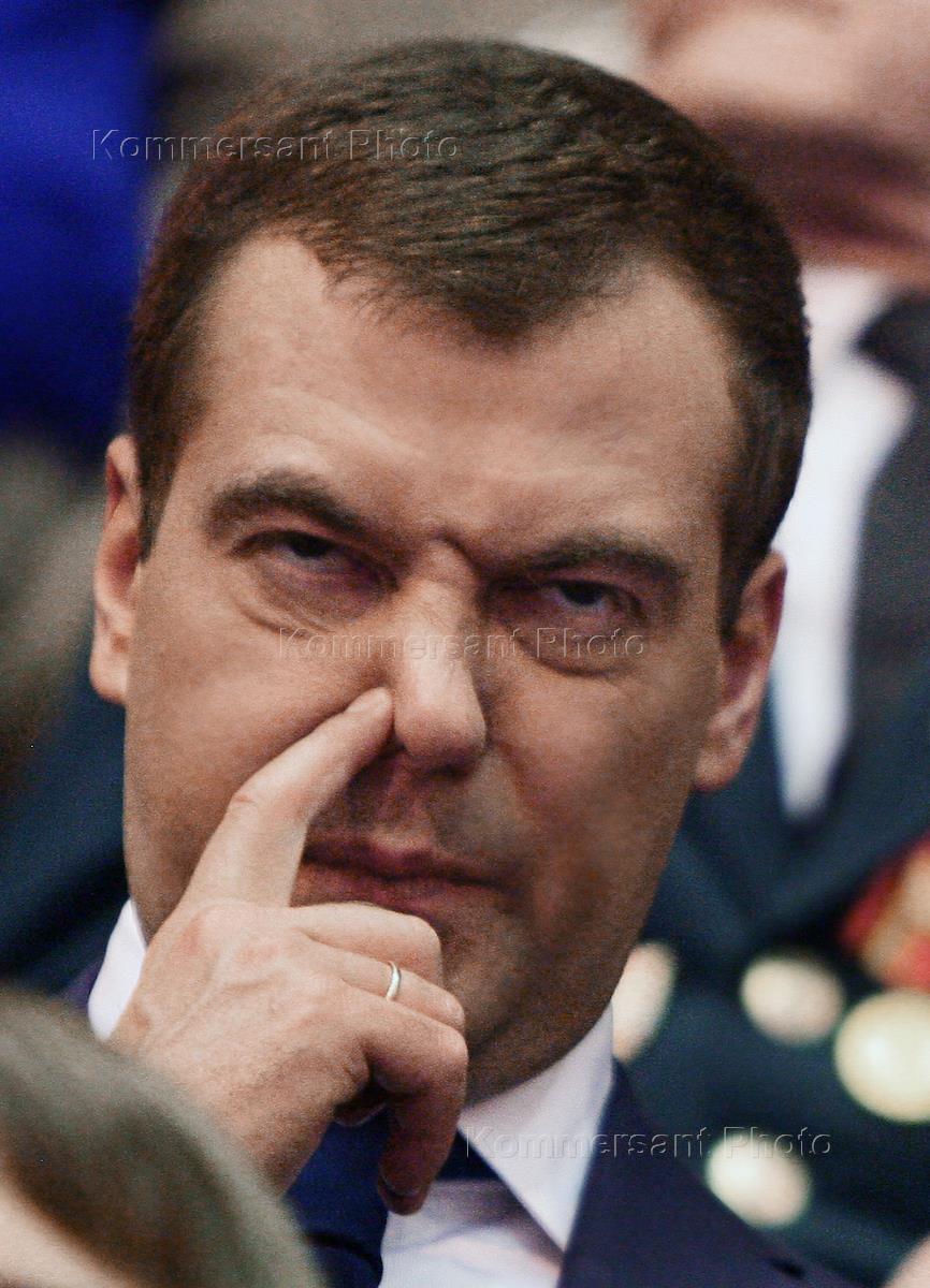 Визит первого заместителя председателя Правительства России Дмитрия Медведева в Волгоград. Первый заместитель председателя Правительства России Дмитрий Медведев во время концерта, посвященного празднованию 65-летия Сталинградской битвы.