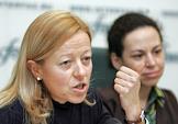 Директор Фонда "United way Russia" Татьяна Задирако (слева) и директор Благотворительного фонда CAF Россия Мария Черток (справа) на пресс-конференции, посвященной подведению итогов первого года работы инициативы российского бизнеса "Благотворительность вместо сувениров".