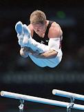 Лидер российской сборной по спортивной гимнастике Алексей Немов во время выступления на XXVII летних Олимпийских играх.