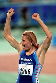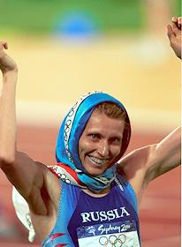 Российская бегунья Ирина Привалова во время выступления на XXVII летних Олимпийских играх.