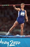 Участница олимпийской сборной России по легкой атлетике по метанию ядра Лариса Пелешенко во время выступления на XXVII Олимпийских играх.