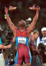 Американский легкоатлет Майкл Джонсон после выступления на XXVII летних Олимпийских играх.