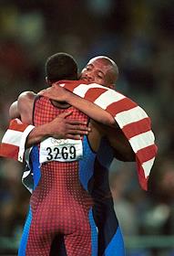 Американский спринтер Морис Грин после выступления на XXVII летних Олимпийских играх.