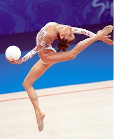 Олимпийская чемпионка по художественной гимнастике Юлия Барсукова во время выступления на XXVII летних Олимпийских играх.