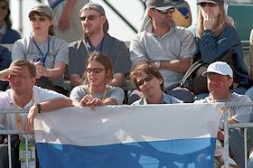 Российские болельщики на трибунах во время соревнований на XXVII летних Олимпийских игр.