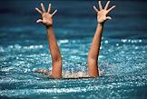 XXVII летние Олимпийские игры. Участница соревнований по синхронному плаванию во время выступления.