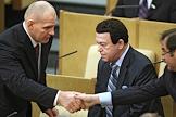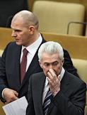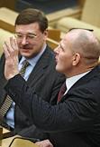 Первый заместитель председателя Комитета Государственной Дума России по делам Содружества Независимых Государств и связям с соотечественниками Константин Затулин (слева) во время думского заседания.