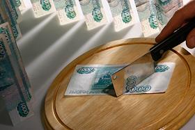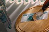 Жанровая фотография. Резак и денежные купюры по 1 000 рублей.