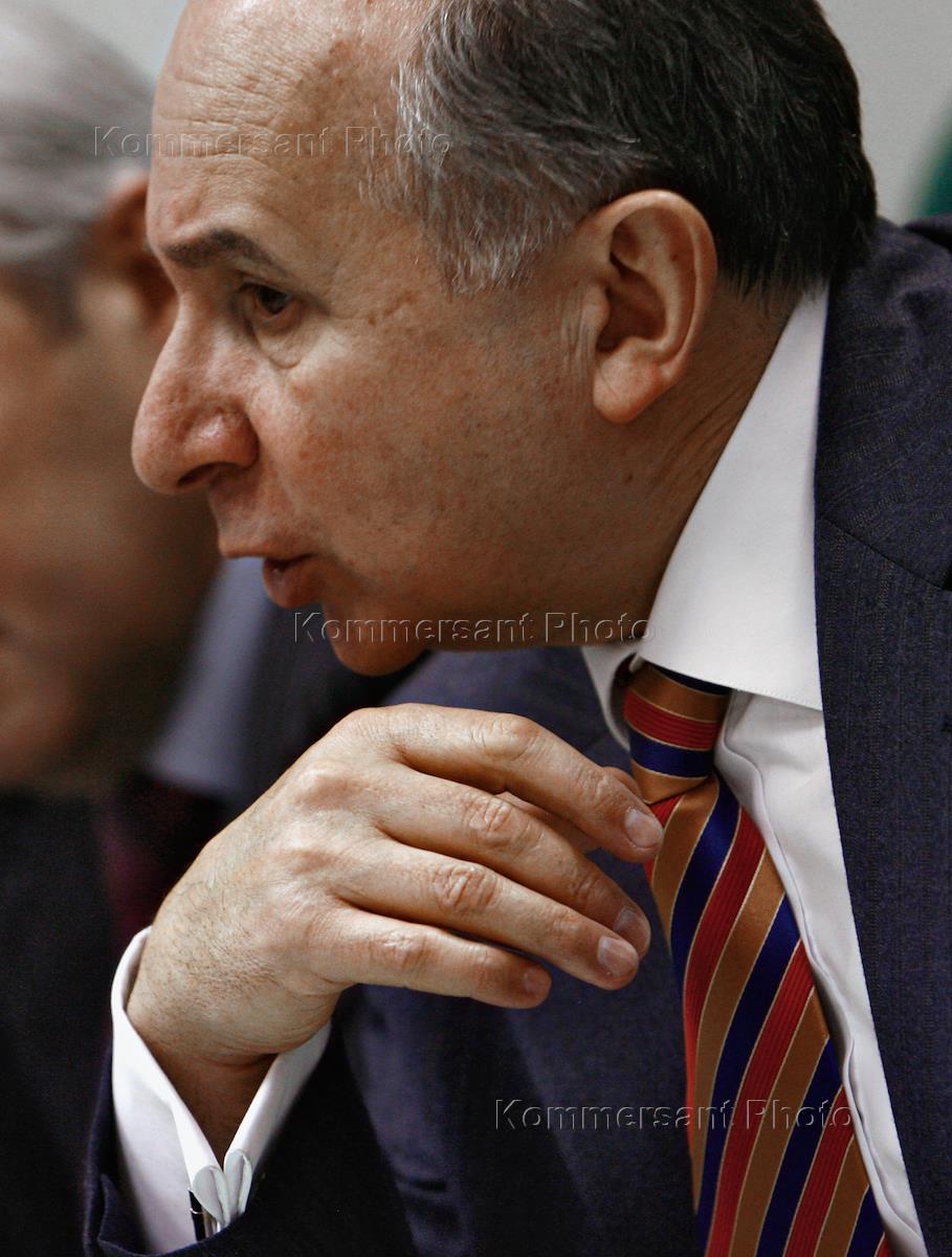 Первый заместитель председателя Центрального Банка России Геннадий Меликьян во время пресс-конференции, посвященной итогам рабочей встречи в подмосковном пансионате "Бор" по вопросам регулирования ЦБ РФ деятельности коммерческих банков и результатам работы банковского сектора России в 2007 году. Пресс-конференция прошла в центральном офисе агентства "Интерфакс".