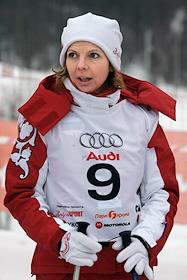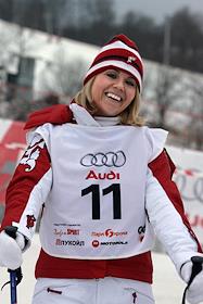 Модельер Надя Сказка на соревнованиях на Кубок "Audi" по горным лыжам в спортивно-развлекательном "Парке Яхрома". Надя Сказка победила в соревнованиях среди женщин.