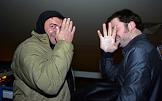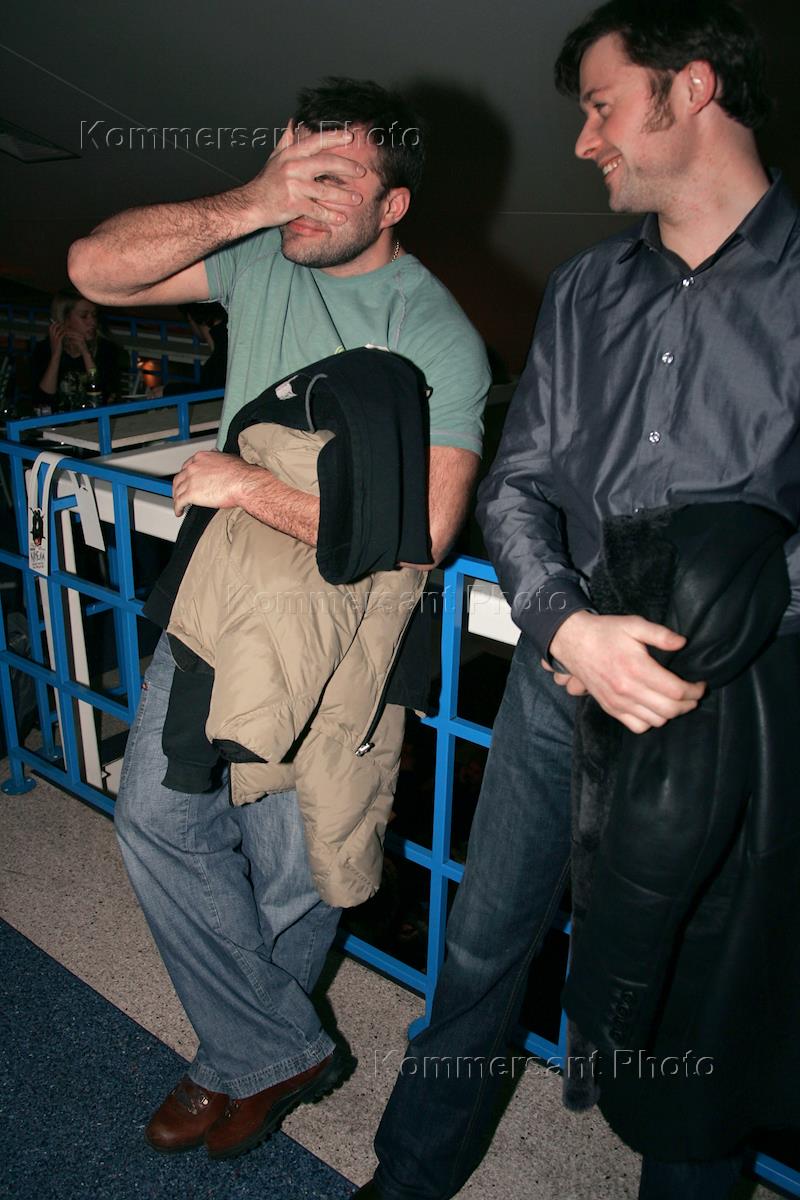 Актеры Михаил Пореченков (слева) и Илья Носков (справа) на премьере фильма "Качели" Валерия Тодоровского в кинотеатре "Пушкинский".