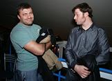 Режиссеры Антон Сиверс (слева) и Дмитрий Месхиев (справа) на премьере фильма "Качели" Валерия Тодоровского в кинотеатре "Пушкинский".