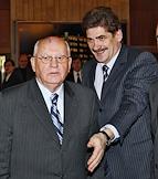 Экс-президент СССР, председатель политического движения "Союз социал-демократов" (ССД) Михаил Горбачев (слева) во время открытия выставки "Лауреат премии "Глобальная энергия", проект ИТЭР – решение мировой энергетической проблемы человечества", посвященной первому заседанию Совета ИТЭР во Франции. Выставка прошла пресс-центре Информационного агентства "ИТАР-ТАСС".