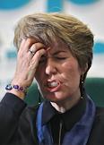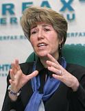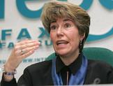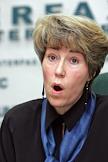 Директор информационного бюро НАТО в России Изабель Франсуа во время пресс-конференции на тема: "Итоги неформального заседания Совета Россия-НАТО на уровне министров обороны в Вильнюсе. Перспективы сотрудничества НАТО и РФ". Пресс-конференция прошла в агентстве "Интерфакс".
