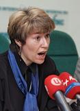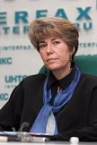 Директор информационного бюро НАТО в России Изабель Франсуа во время пресс-конференции на тему: "Итоги неформального заседания Совета Россия-НАТО на уровне министров обороны в Вильнюсе. Перспективы сотрудничества НАТО и РФ". Пресс-конференция прошла в агентстве "Интерфакс".