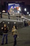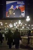 Манежная площадь. Агитационный плакат к выборам Президента России с портретами Президента России Владимира Путина и первого заместителя председателя Правительства России Дмитрия Медведева на гостинице Москва.