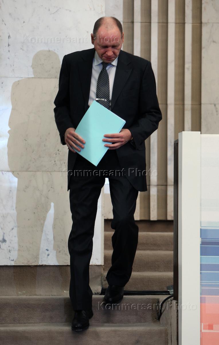 Пресс-секретарь Президента России Алексей Громов на пресс-конференции Президента России Владимира Путина для российских и иностранных журналистов. Пресс-конференция прошла в Круглом зале Кремля.