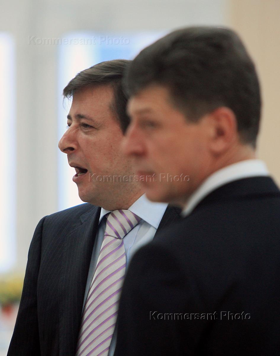 V Красноярский экономический форум "Россия 2008 - 2020. Управление ростом". Губернатор Красноярского края Александр Хлопонин (слева) и министр регионального развития России Дмитрий Козак (справа) во время форума.