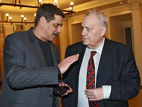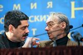 Президент фонда "Триумф" Игорь Шабдурасулов (слева) и президент кинопремии "Ника", народный артист СССР Алексей Баталов (справа) во время заседания Академии кинематографических иcкусств "НИКА", где прошло объявление номинантов XXI премии "НИКА". Заседание прошло в Центральном доме архитекторов.