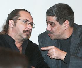 Режиссер Юрий Грымов (слева) и президент фонда "Триумф" Игорь Шабдурасулов (справа) во время заседания Академии кинематографических иcкусств "НИКА", где прошло объявление номинантов XXI премии "НИКА". Заседание прошло в Центральном доме архитекторов.