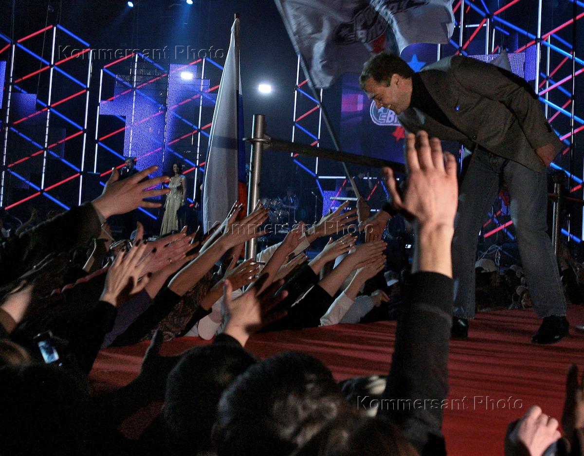 Первый заместитель председателя Правительства России Дмитрий Медведев во время проведения второго Всероссийского спортивного форума "Россия, вперед!", посвященного обсуждению государственной политики в области развития детского и массового спорта. Форум прошел в Ледовом дворце.