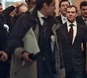Первый заместитель председателя Правительства России Дмитрий Медведев перед началом совещания по развитию массового спорта.