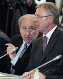 Первый заместитель председателя Правительства России Дмитрий Медведев (слева) и президент Татарстана Минтимер Шаймиев (справа) перед началом совещания по развитию массового спорта.
