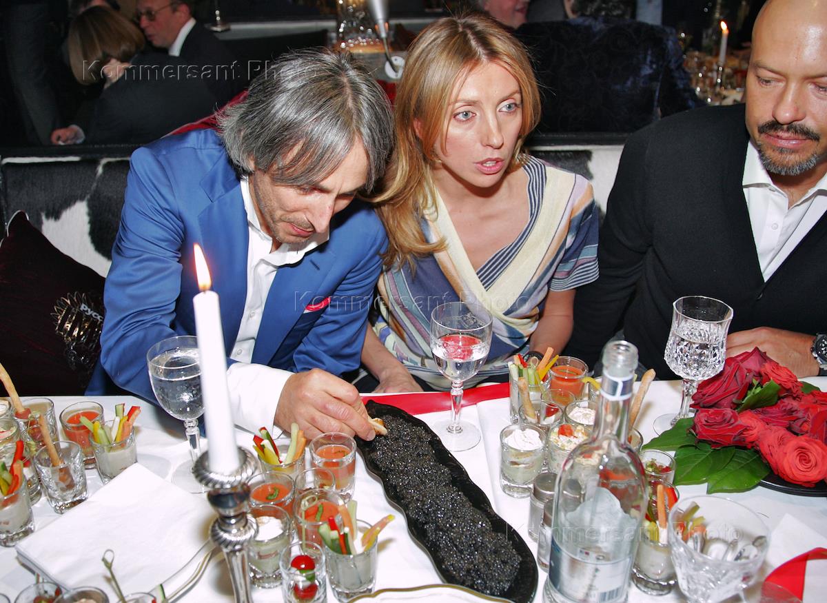 Президент "Альфа-банка" Петр Авен (справа) с супругой Еленой (слева) на вечеринке "Silver rain in black" ("Серебряный дождь в черном"), посвященной вручению премии "Человек дождя", в ресторане "Бон".