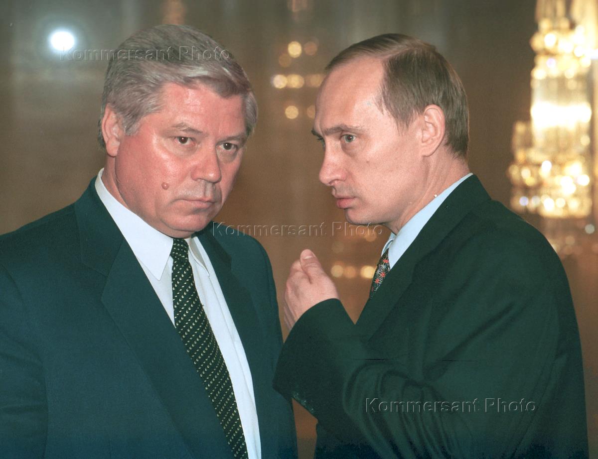 Председатель Верховного суда России Вячеслав Лебедев (слева) и Председатель Правительства России Владимир Путин (справа) во время ежегодного послания Президента России Бориса Ельцина Федеральному собранию, которое состоялось в Кремле.