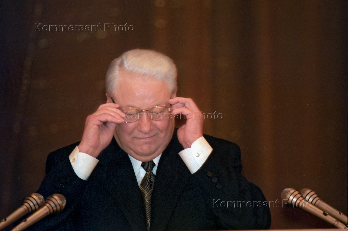 Президент России Борис Ельцин во время выступления с посланием к Федеральному собранию.