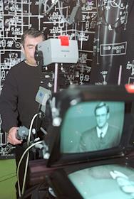 Оператор за работой в студии телеканала НТВ. Телекамера на кране.