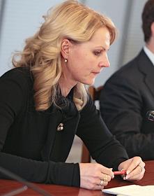 Министр здравоохранения и социального развития России Татьяна Голикова во время совещания по вопросам совершенствования социального обеспечения граждан.