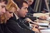 Первый заместитель председателя Правительства России Дмитрий Медведев во время совещания по вопросам совершенствования социального обеспечения граждан.