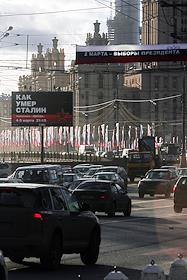 Предвыборная растяжка с надписью "2 марта - Выборы Президента" на Кутузовском проспекте, перед зданием гостиницы "Украина".