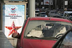 Предвыборная агитация. Плакат на улице города с надписью "2 марта- главные выборы страны".