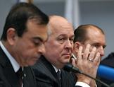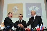 Президент автоконцерта "Renault" Карлос Гон (слева), генеральный директор федерального государственного унитарного предприятия "Рособоронэкспорт" Сергей Чемезов (в центре) и губернатор Самарской области Владимир Артяков (справа) на подписании соглашения о покупке компанией "Renault" пакета акций ОАО "АвтоВАЗ". Подписание прошло в здании "Рособоронэкспорт".