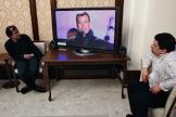 Выборы Президента России. Предвыборный штаб Дмитрия Медведева. Кандидат на пост Президента России, первый заместитель председателя Правительства России Дмитрий Медведев (на экране телевизоар).