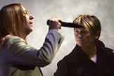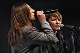 Лидер группы "Ночные снайперы" Диана Арбенина (слева) и солист группы "Би-2" Лева (справа) на презентации альбома "Нечетный воин" в театре "Школа современной пьесы".