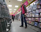 Покупатели в торговом зале мультимедийной сети магазинов "Настроение".