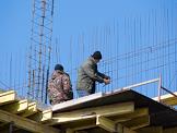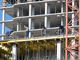 [English translation in progress (2)] Monolithic construction of an apartment house. Working builders fill in with concrete overlapping.