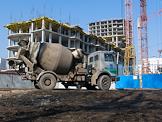 Car for transportation of a solution of concrete (concrete mixer) on a building site.