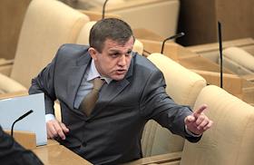 Член Комитета Государственной Думы России по финансовому рынку Александр Коваль (слева) во время думского заседания.