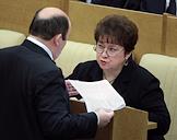 Член Комитета Государственной Думы России по бюджету и налогам Надежда Максимова (справа) во время думского заседания.