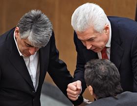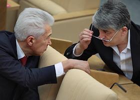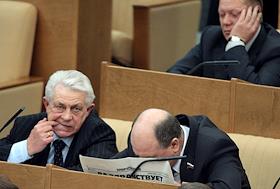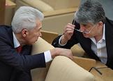 Председатель Комитета Государственной Думы (ГД) России по безопасности Владимир Васильев (слева) и член Комитета ГД России по безопасности Отари Аршба (справа) во время думского заседания.