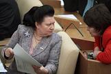 Член Комитета Государственной Думы России по бюджету и налогам Раиса Кармазина (слева) во время думского заседания.