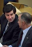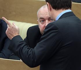 Член Комитета Государственной Думы России по финансовому рынку Александр Коваль (слева) во время думского заседания.