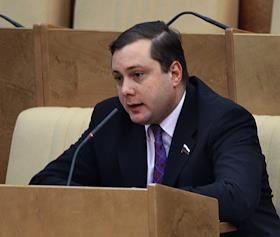 Председатель Комитета Государственной Думы России по делам Содружества Независимых Государств и связям с соотечественниками Алексей Островский во время думского заседания.