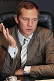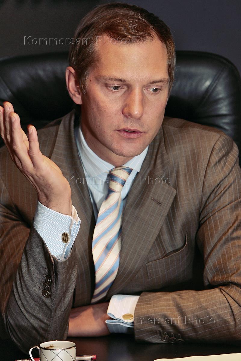 Заместитель генерального директора по правовым и корпоративным вопросам горно-металлургической компании (ГМК) "Норильский никель" Денис Морозов во время интервью в своем рабочем кабинете.