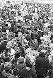 Митинг на Дворцовой площади. Плакат с надписью "Нет 2-ой блокаде!".