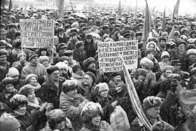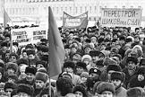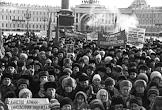 Митинг на Дворцовой площади. Плакат с надписью "Перестройщиков под суд!"